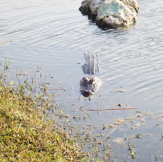 I started to move toward the fish, thinking of rescuing it, but the fish kicked into the weeds and the gator sprung out of the water toward the commotion, but couldn’t see it clearly because of the shore reeds.