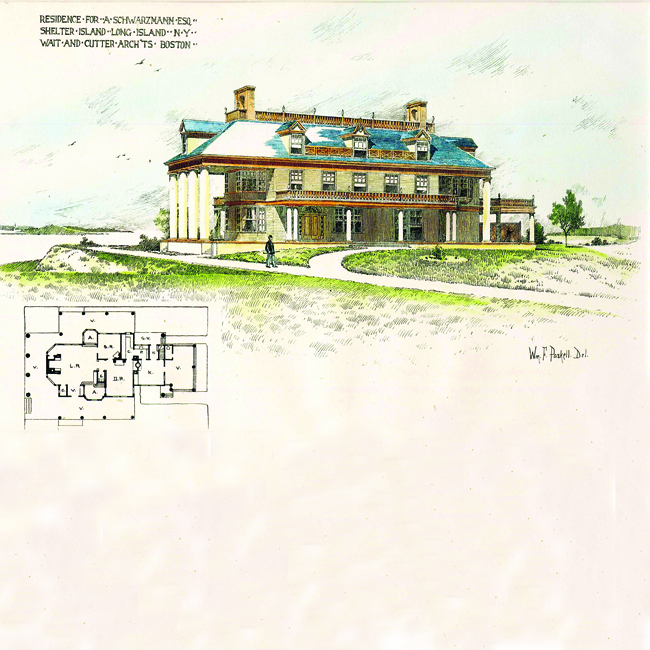 A second and even more compelling piece of evidence is the plan for the house that archivist Phyllis Wallace unearthed in the Historical Society collection, which clearly lists “Wait and Cutter Arch’s, Boston” as the firm responsible for the drawing and floor plan of “Residence for A. Schwarzmann Esq.”