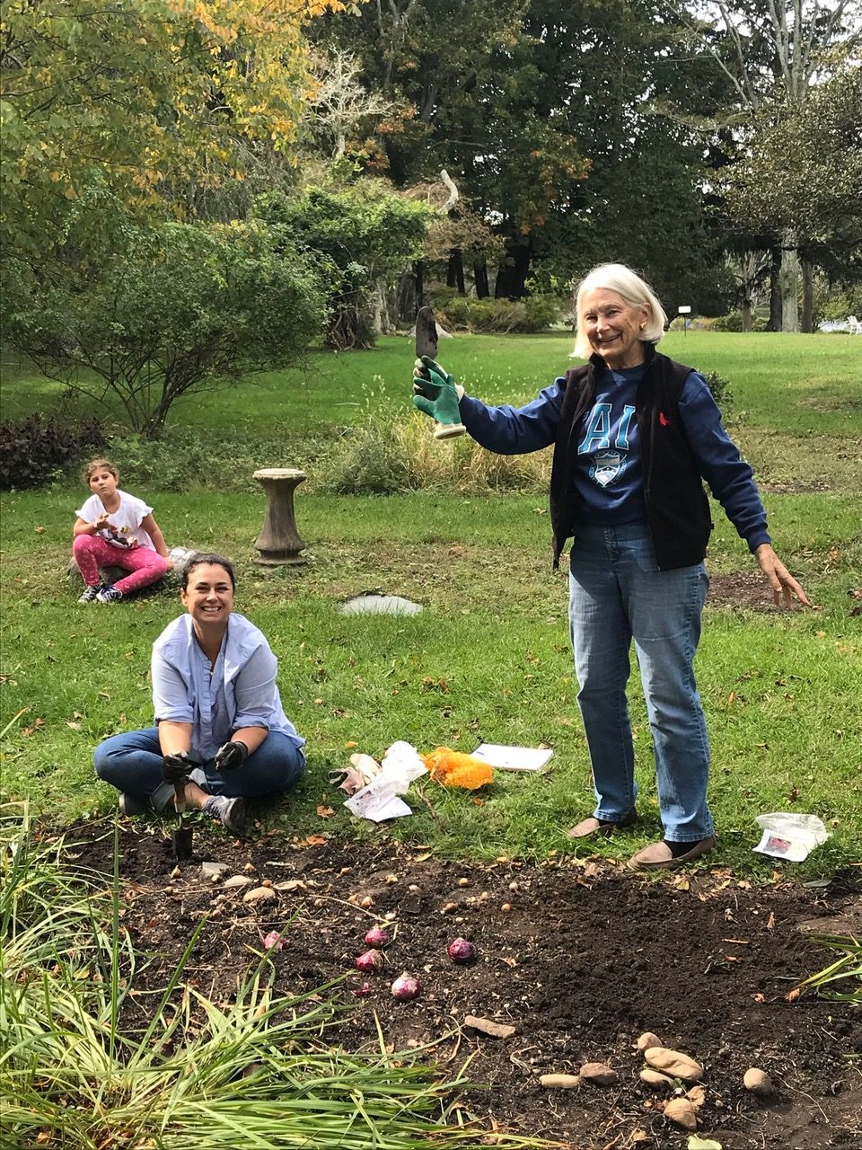 Sylvester Manor invited the public to help plant spring bulbs on Sunday, Oct. 13, at the Manor Gardens. Led by volunteer landscape architect Kate Bolton, the manor hosted what director Tracy McCarthy called ‘a small but dedicated crew’ of about six people who helped to plant a variety of bulbs that were reflective of the Fiske and Horsford eras at the Manor. The array included tulips, daffodils, narcissi, crocuses and an heirloom species of Fritillaria meleagris, that dates back to 1575, she said. ‘The vision is to start to bring visual and fragrant beauty back to the garden, starting this upcoming spring,’ said Ms. McCarthy. ‘There will be an extended path that will lead through the garden, allowing visitors to enjoy the newly planted bulbs.’