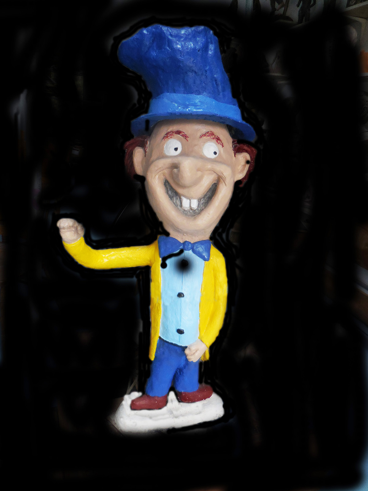 I should have waited until Fidencio was with me on Sunday and the sculpture was placed on a device that could be adjusted to any height. After much labor and frequent resting, it got done. The miserable Hatter came out about 80% O.K. After I make the repairs, I told myself, it will be difficult to spot them. When he’s repaired and painted in my garden, I’ll probably grow to love him.