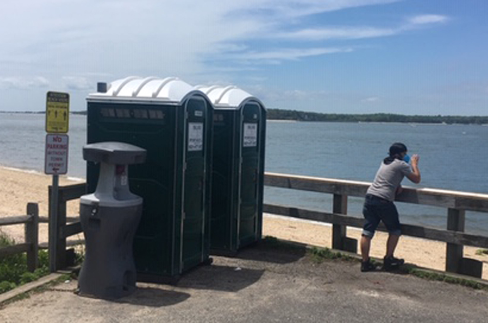 Shelter Island Police Officer David McGayhey, who was monitoring the beach on Saturday, said the town had a translator to speak to beachgoers in Spanish, letting them know that they must adhere to the private property guidelines set up along the shore to stay below the high water line, and that they must use the two new portable toilets. There is also a freshwater facility adjacent to the toilets.