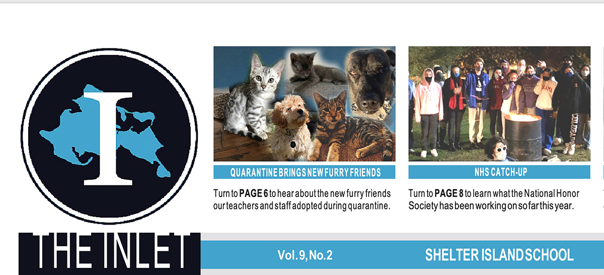 “Our paper was trapped in the school,” Ms. Dougherty said. In addition to the print edition, it can be found on the school district’s website at shelterisland.k12.ny.us/. Click on ‘Resources’ to find The Inlet.