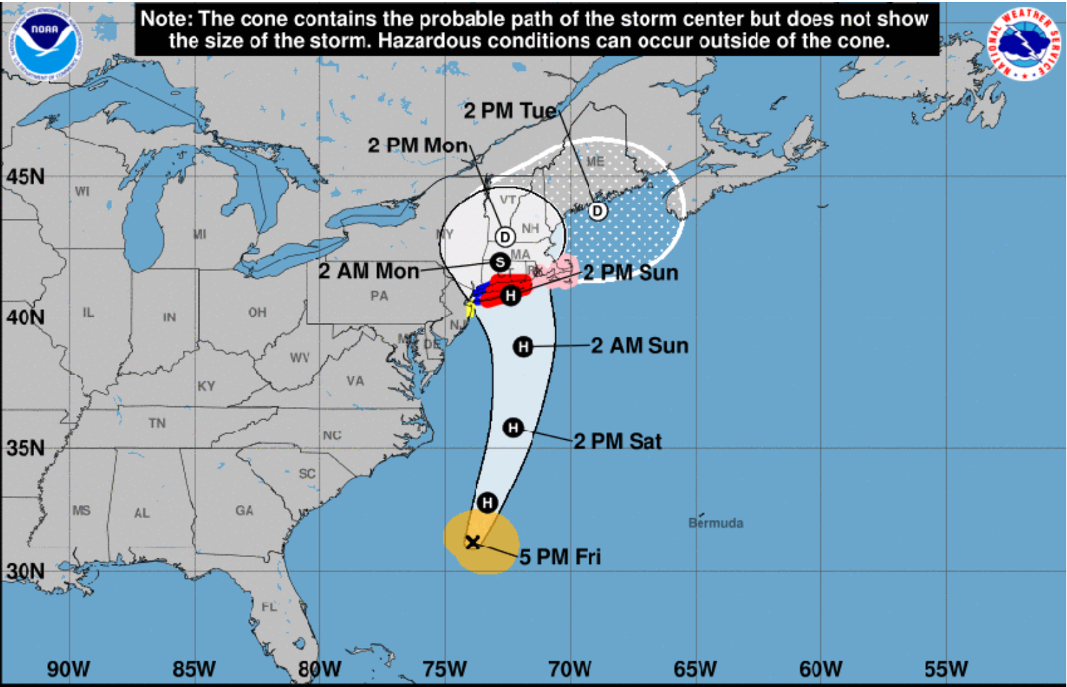 The storm continues to strengthen and “is expected to become a hurricane Saturday and be at or near hurricane strength when it makes landfall in Long Island or southern New England,” a National Weather Service advisory says.