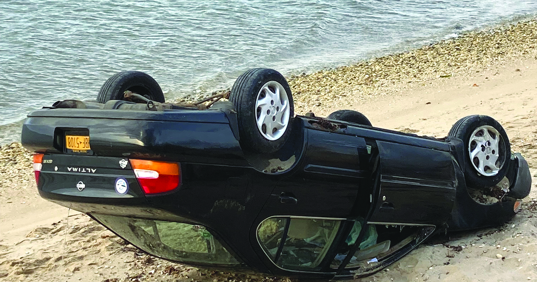 Zebulun Jerome Mundy of Shelter Island was traveling westbound on Oak Tree Lane’s dirt road on Oct. 9 at 1:25 a.m. when he lost control of his vehicle, hit a wooden bollard and continued off the roadway. The vehicle overturned on Shell Beach, deploying the airbag. There were no injuries but damage to the front and roof of the vehicle exceeded $1,000.