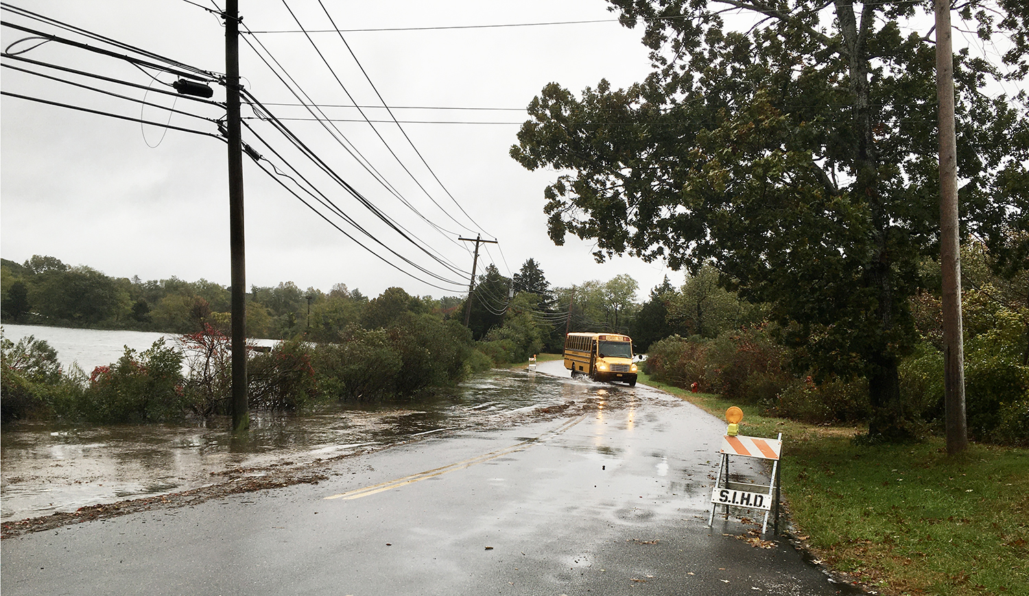 There was flooding yesterday and over night in “the usual spots,” Highway Superintendent Brian Sherman said early Wednesday morning, such as on Midway and West Neck roads and roadways near the water. This was especially true at yesterday’s high tides, which came between 4 and 5 o’clock during the morning and evening.