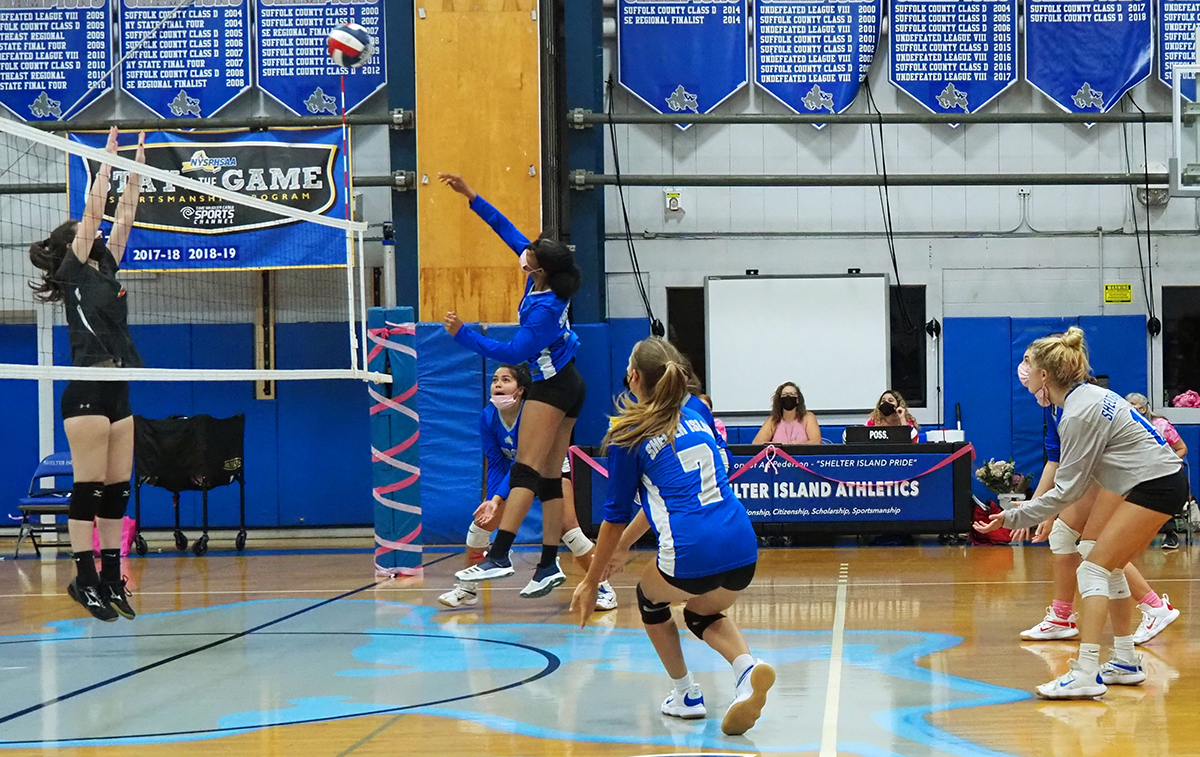 At the October 13 final home game of the season, and Senior Send-off for the Shelter Island varsity volleyball team, the coaches and players shared words and tokens of their esteem. The words describing the seniors were contributed from their teammates. I was very happy to hear the words “kind,” “strong” and “hard-working” repeated for many of this dynamic group. Parents enjoyed and/or shed tears for another “last” for their seniors.