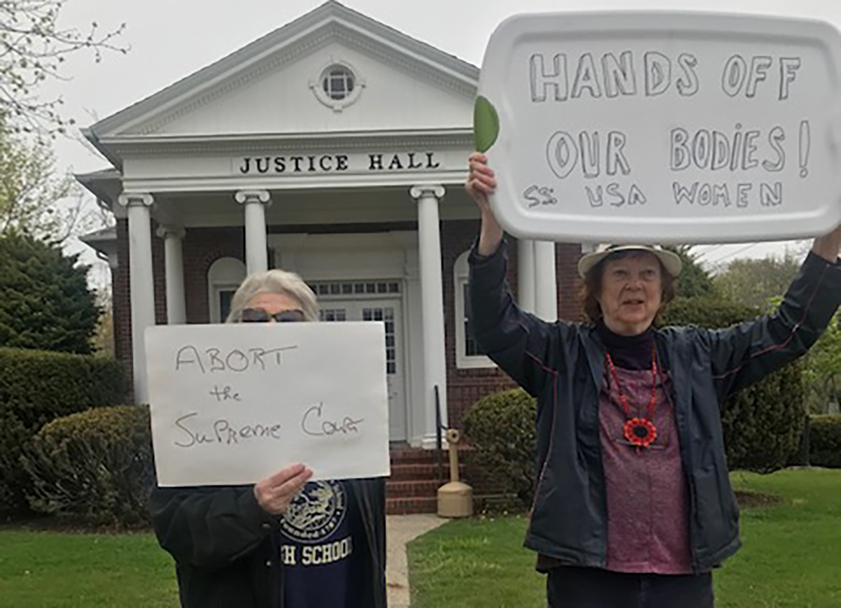 Opponents turned out in front of the courthouse on Shelter Island and across the East End Tuesday in a show of opposition to the anticipated U.S. Supreme Court ruling striking down Roe v. Wade.