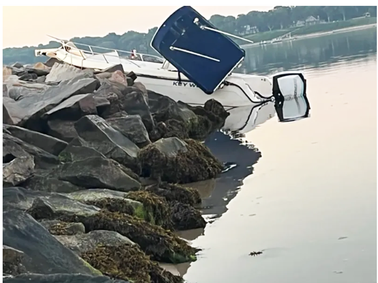 Police Chief Martin Flatley said Sunday morning that Sea Tow was working to remove the damaged boat following the police investigation. The chief also said there was no immediate sign of alcohol at the scene and the victim is not in police custody. The jetty has been the site of several similar crashes over the years, particularly at night when it can be difficult to see.