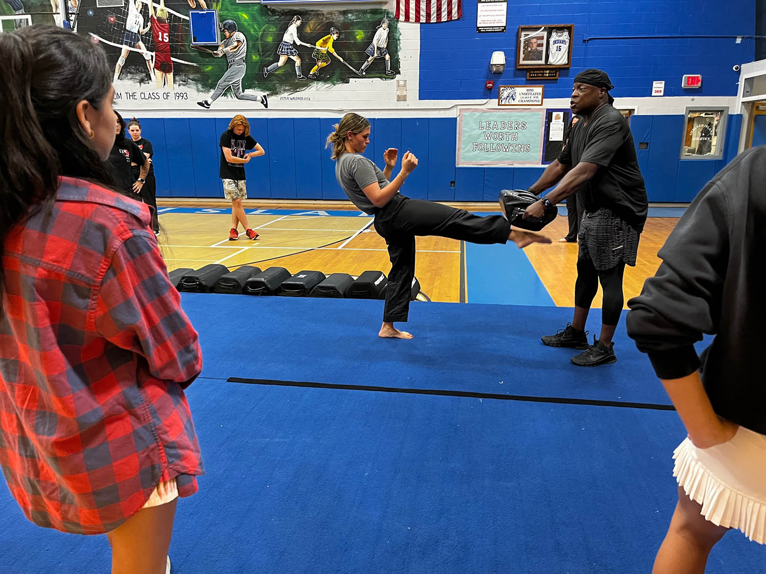 The program of self-defense lessons at the school was suspended for the past two years during the pandemic. But Board of Education member Kathleen Lynch arranged for Mr. Morrison and Sensei Michelle Del Giorno of Epic Martial Arts in Sag Harbor to return with assistants at a time when violence is all too present in the country.