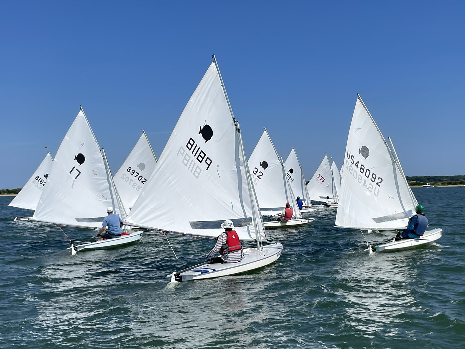 We are a very congenial club, open to all, with no dues, no fees and no clubhouse. The sailing is great, the camaraderie is superb, and we just have tremendous fun. All sailors, novice to expert, are welcome. Just show up in West Neck Harbor at 2 p.m. on any Sunday through Labor Day, check in with the Race Committee, giving them your full name and sail number, and be sure to bring your life jacket and, for the protection of the chase boat crew, be fully vaccinated.